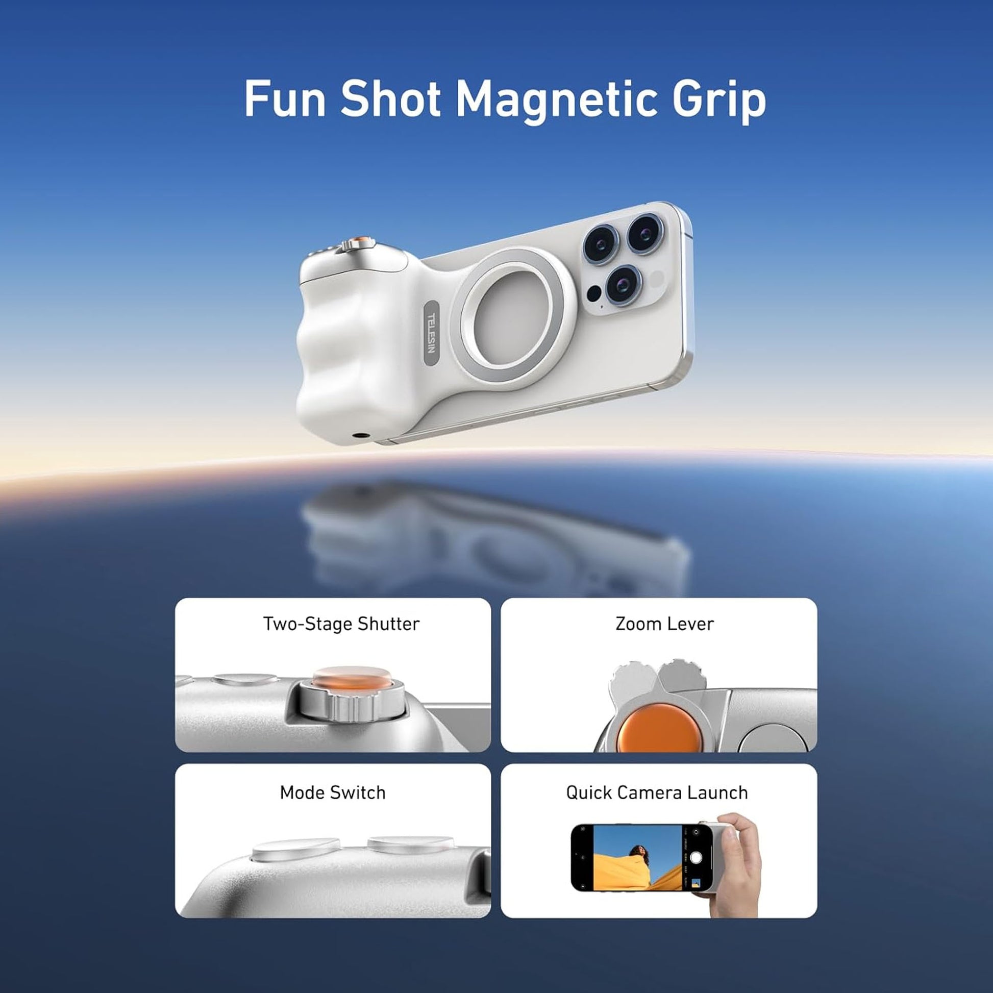 TELESIN Magnetic Phone Camera Shoot Hand Grip | Bluetooth Remote Control Handle | for iPhone, Samsung, Huawei, Xiaomi