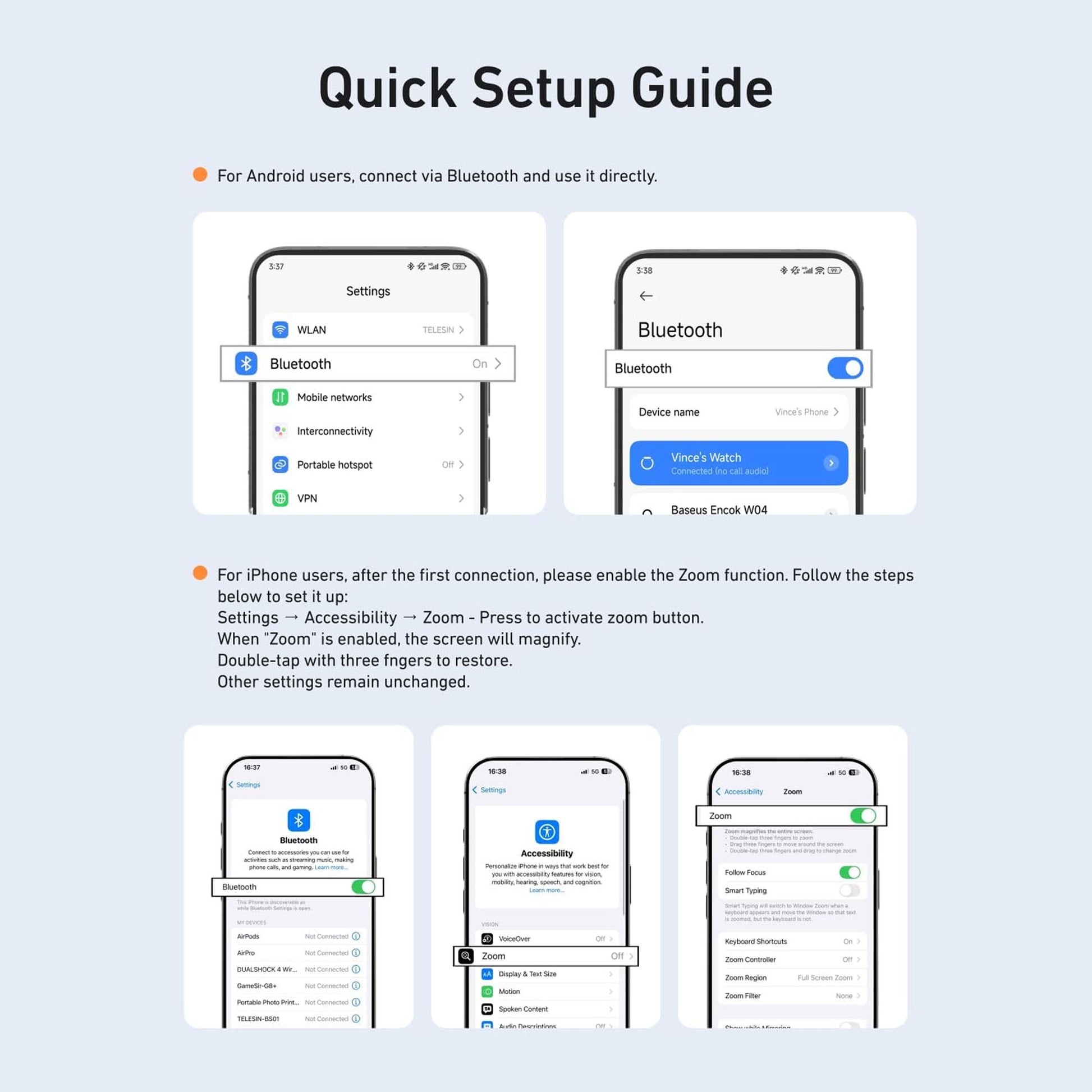 Works with iPhone, Huawei, Xiaomi, Oppo, Vivo (see instructions for wake methods).